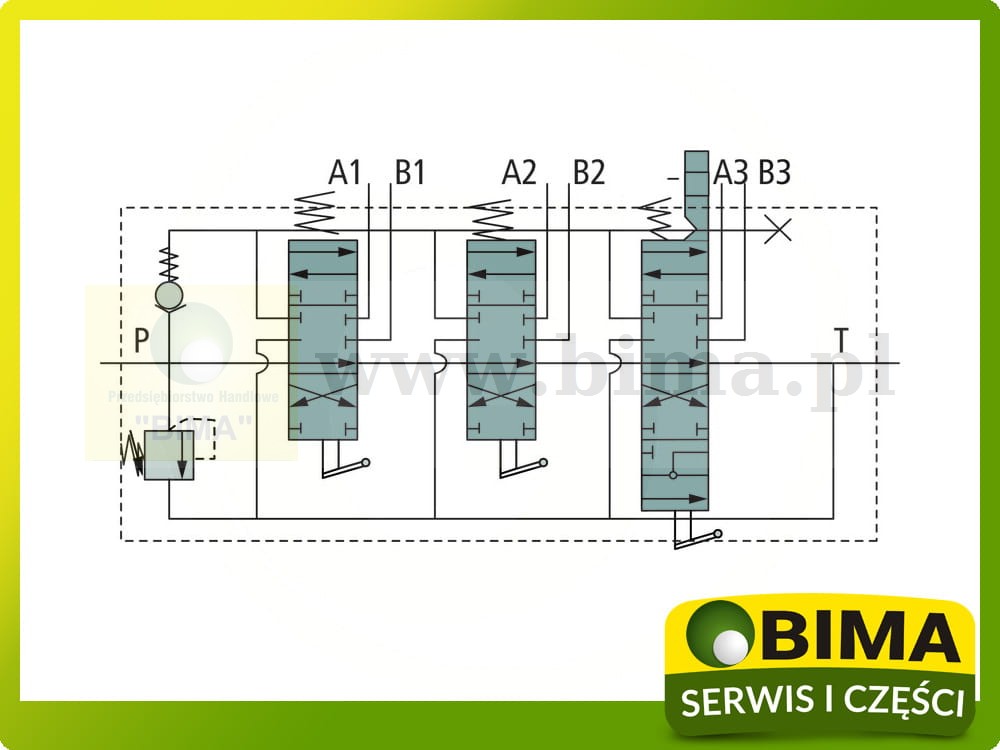 Funkcja - tłok sterujący: 3 x dwustr. dział.
