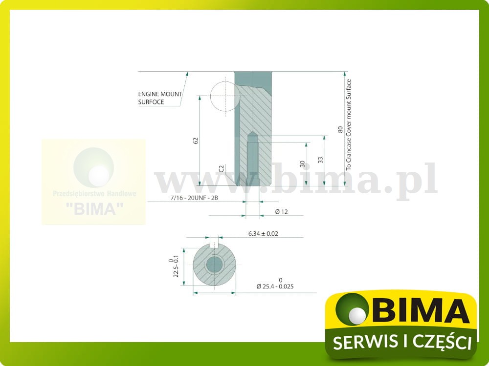 - Wał korbowy: pionowy, walcowy Ø 25,4 mm, długość 80 mm