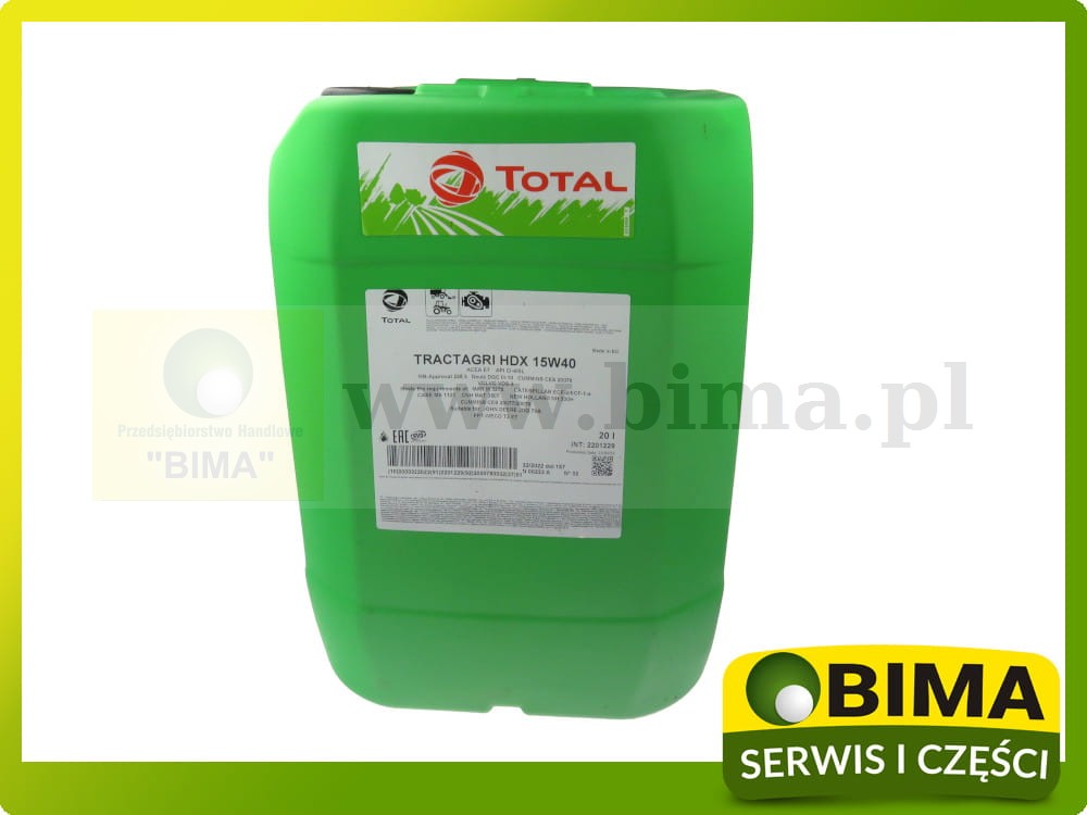 TOTAL TRACTAGRI HDX 15W40 20L OLEJ SILNIKOWY RENAULT,CLAAS ARES AGRIMOT SDX 15W-40