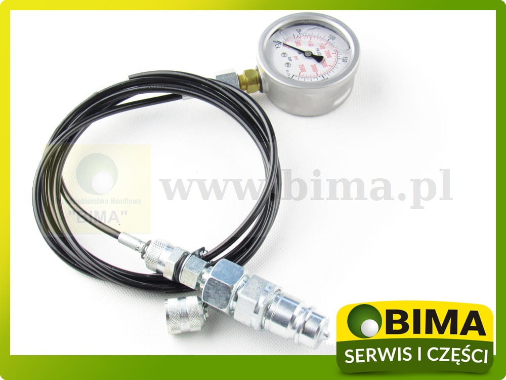 Zestaw zawiera przewód pomiarowy o długości 2 m, wysokiej jakości manometr 0-250 bar oraz szybkozłącze do gniazda hydrauliki zewnętrznej.